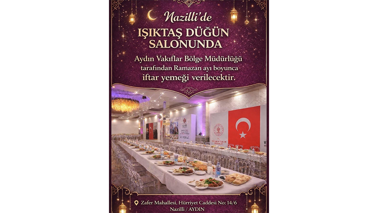 Aydın Vakıflar Bölge Müdürlüğü, Ramazan ayı boyunca Nazilli’de vatandaşlara iftar yemeği verecek. İftar programı, Nazilli’de bulunan Işıktaş Düğün Salonu’nda gerçekleştirilecek.