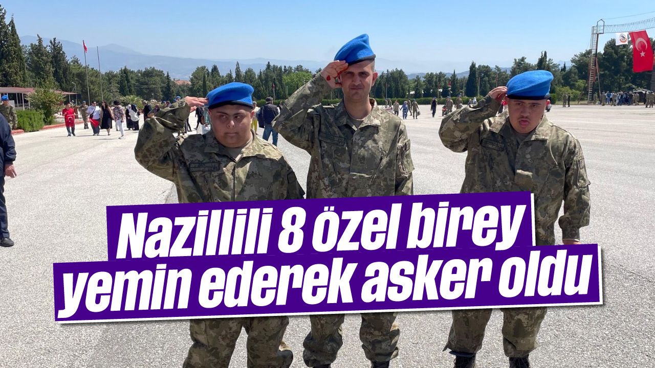Nazilli’de 3 özel birey Güzelköy Özel Eğitim okulundan, 5 kişide normal müracaat olmak üzere toplam 8 kişi Denizli 11 Komando Tugay Komutanlığında düzenlenen tören ile yemin ederek asker oldu. Özel bireyler asker olabilmek için yemin ederlerken aileleri de büyük bir sevinç ve gurur yaşadı. Duygusal anların yaşanan törenin ardından Denizli’ye gidip yemin ederek 1 günlük askerlik görevlerini tamamlayan özel birey askerler terhis olarak Nazilli’ye geri döndüler.