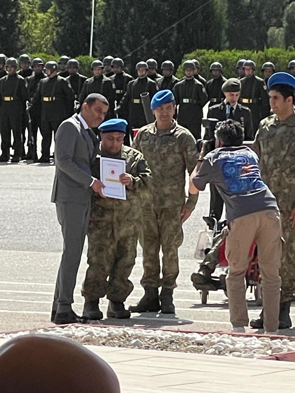 Engelliler Haftası kapsamında Denizli’de düzenlenen anlamlı etkinlikte Özel bireyler bir günlük temsili askerlik yaptılar. 11’inci Komando Tugay Komutanlığında gerçekleşen etkinlikte özel bireyler, önce asker kıyafetlerini giyerek temel eğitim aldı, ardından yemin ederek terhis belgelerini teslim aldılar.