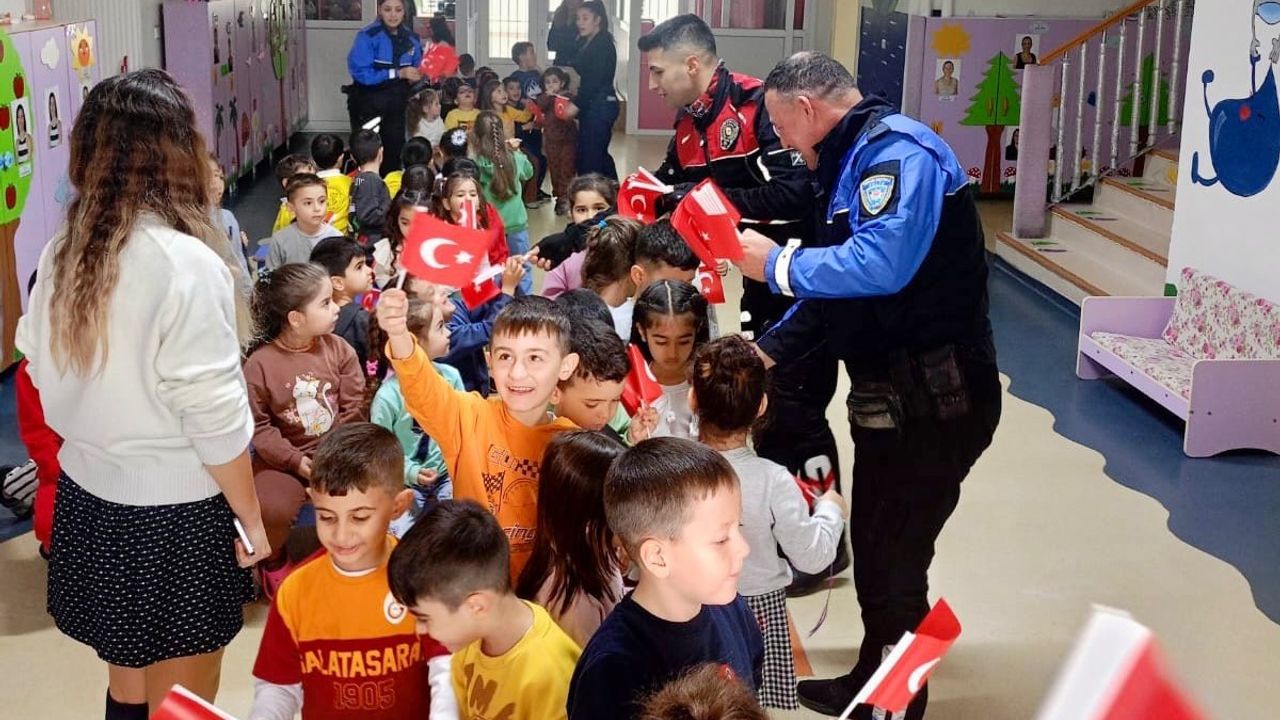 Aydın İl Emniyet Müdürlüğü ekipleri, öğrencilerin güvenlik bilincini artırmak ve moral motivasyonlarına katkı sağlamak amacıyla okul ziyareti gerçekleştirdi. Efeler ilçesinde bulunan İstiklal Anaokulu’nda öğrencilerle buluşan Toplum Destekli Polislik Şube Müdürlüğü ekipleri, emniyet teşkilatının her zaman yanlarında olduğunu hissettirmek amacıyla "Polis kimdir, ne iş yapar ve genel güvenlik kuralları" konularında öğrencileri bilgilendirdi. Etkinlik boyunca öğrenciler, polislerle sohbet ederek merak ettikleri soruları yöneltme fırsatı buldu. İl Emniyet Müdürlüğü koordinesinde farkındalık çalışmalarının sürdürüleceği öğrenildi.