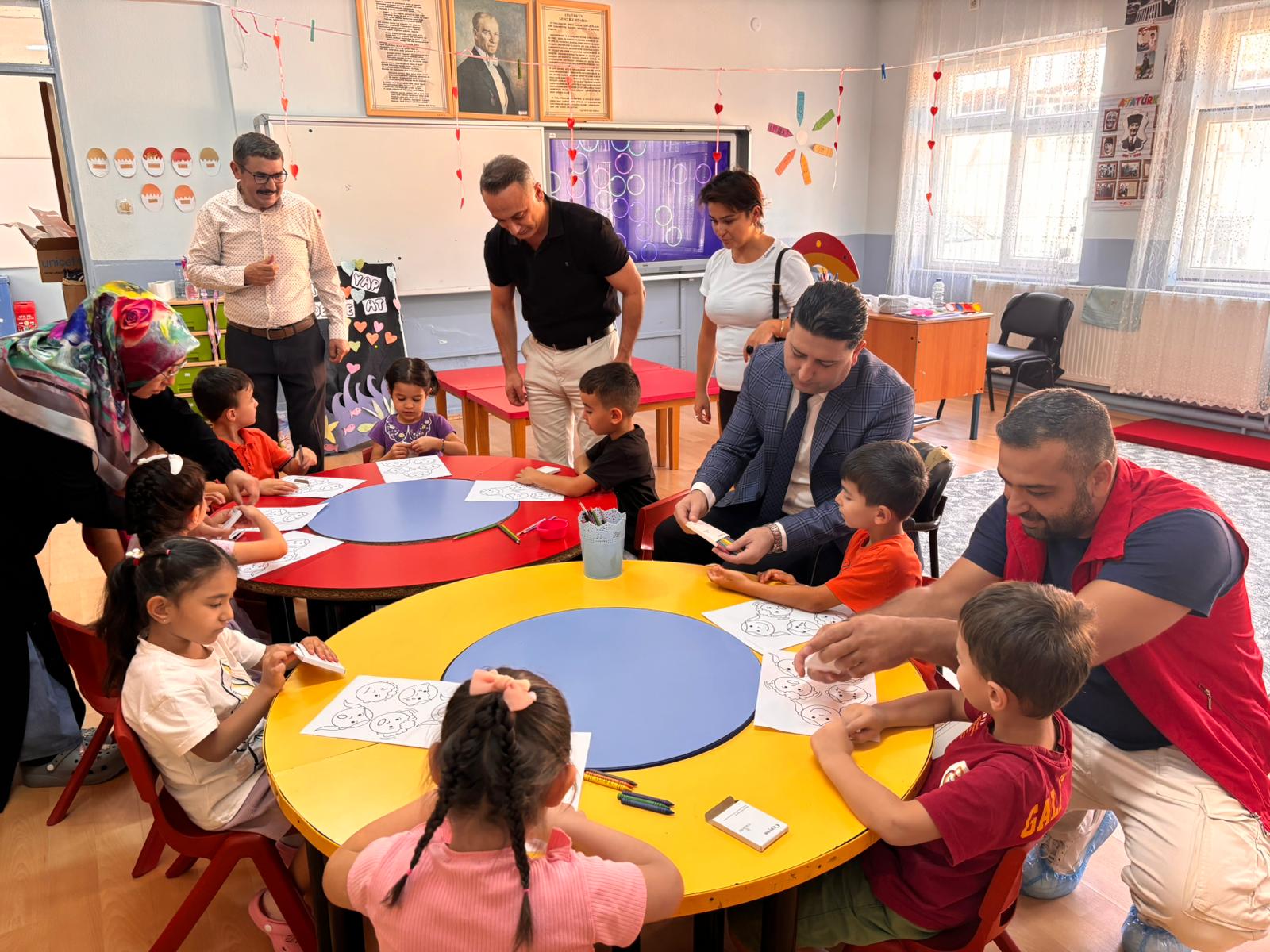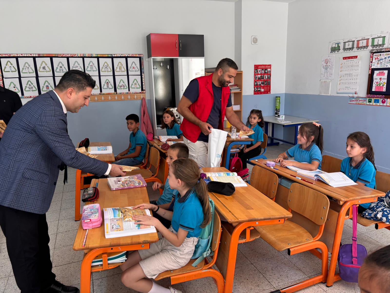 Sınıfları gezen heyet öğrencilere çeşitli kırtasiye malzemeleri hediye ettiler. Miniklerle sohbet eden Karataş ve Gürel, öğrencilere çeşitli tavsiyelerde bulunup başarılar dilediler.