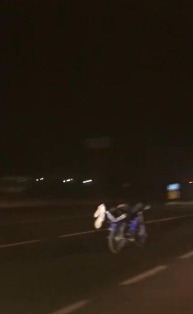 Süratli bir şekilde motosikletlerle akrobasi hareketi yapan gençler ağır vasıta araçlara da aldırış etmeden hem trafiği hem de kendi canlarını tehlikeye attı. Adeta ölümle dans eden gencin yaptığı hareketler yürekleri ağızlara getirdi.