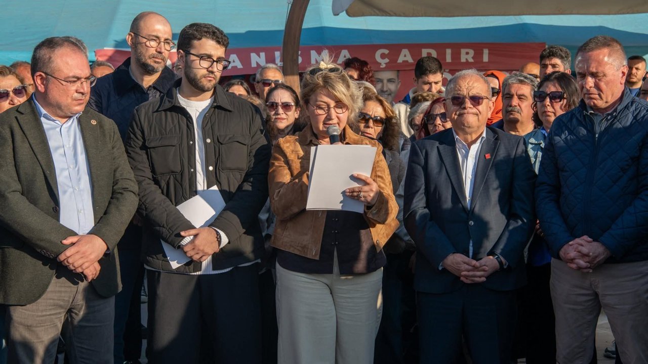 Kuşadası’nda CHP Aydın İl Başkanı Hikmet Saatçı, Kuşadası İlçe Başkanı Mehmet Gürbilek, İl Gençlik Kolları Başkanı Ufuk Gündoğdu, Germencik Belediye Başkanı Burak Zencirci, Kuşadası Başkan Vekili Tahsin Demirtaş, Kuşadası Belediye Başkanı Ömer Günel’in eşi Duygu Günel ve oğulları Ada Günel, belediye meclis üyeleri, partililer ve vatandaşlar Adalet ve Dayanışma Çadırında bir araya geldi. Silivri’de tutuklu bulunan Kuşadası Belediye Başkanı Ömer Günel’in mektubunu eşi Duygu Günel Kuşadalılarla paylaştı.