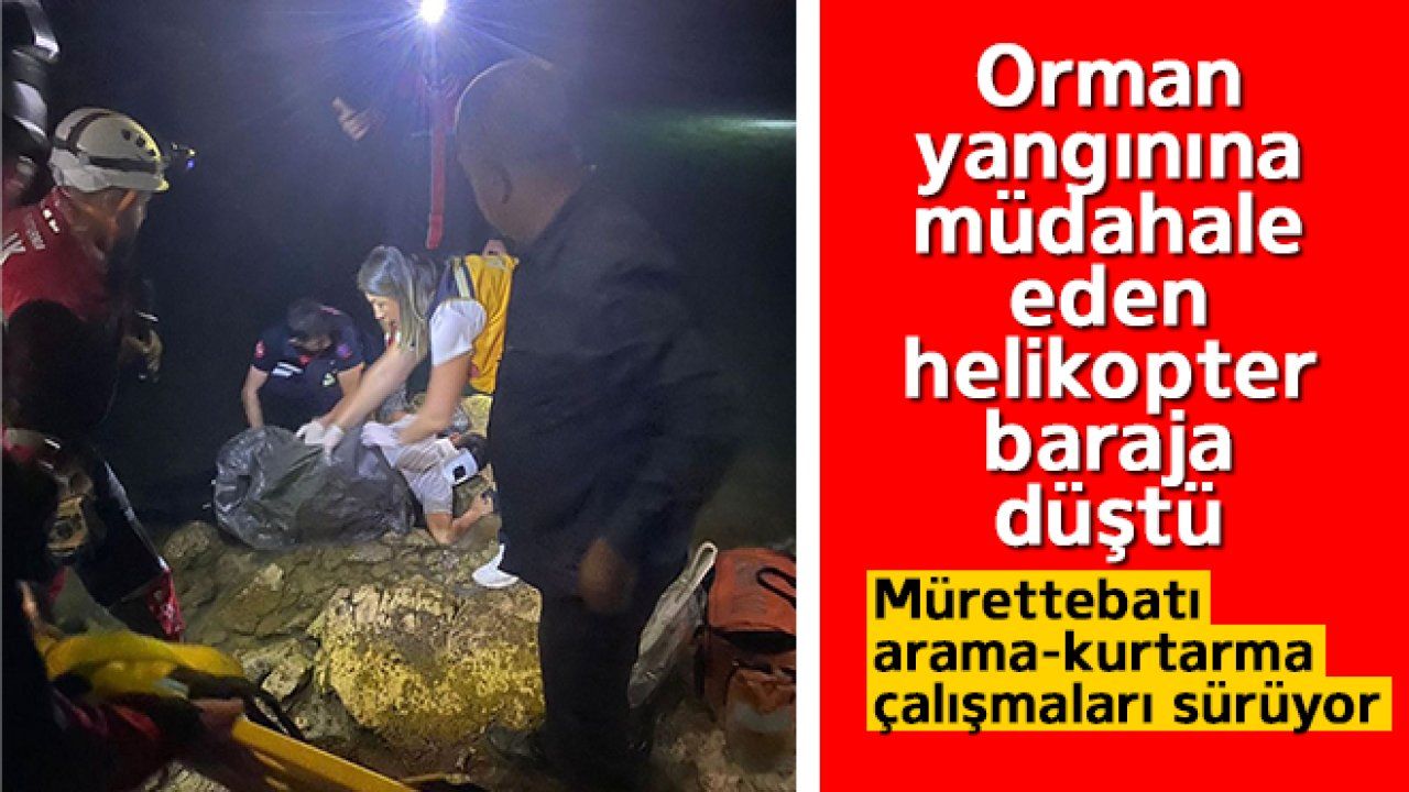 İzmir'in Menderes ilçesindeki orman yangınına müdahale etmek için Tahtalı Barajı'ndan su almaya çalışan ve içinde 4 personelin olduğu öğrenilen yangın söndürme helikopteri baraja düştü.