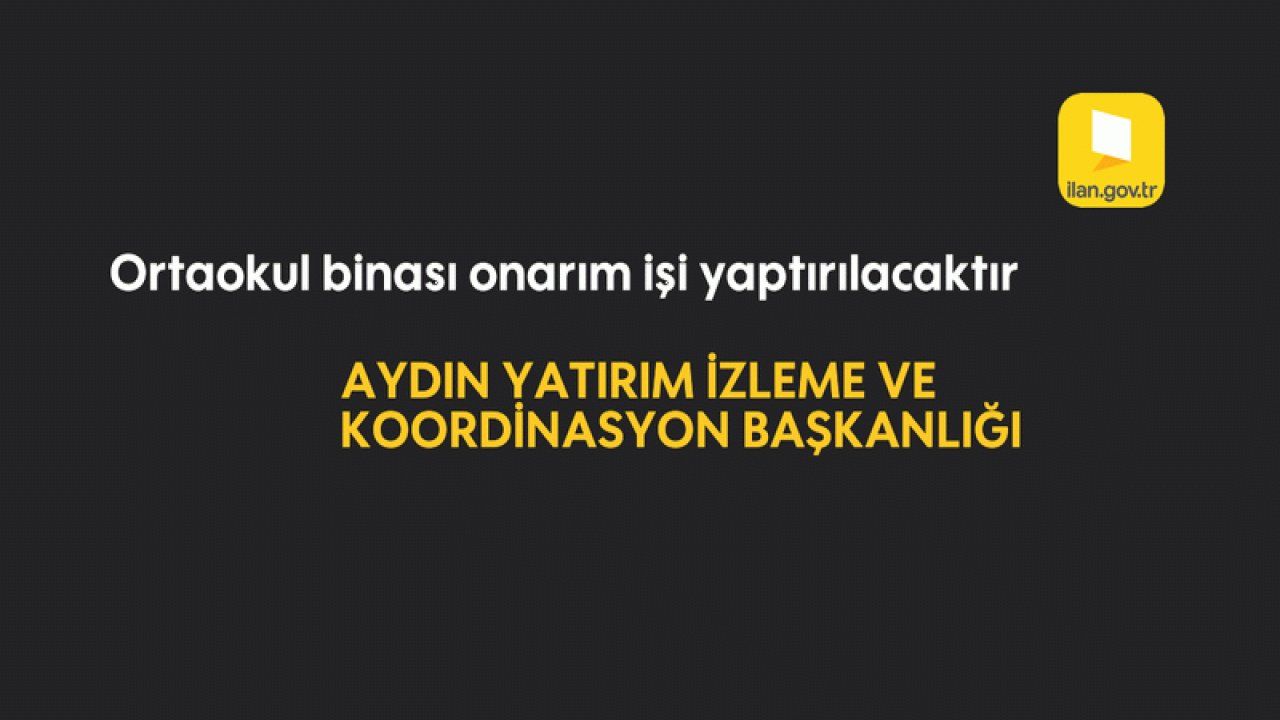 ilan.gov.tr'nin internet sitesinde yer alan ilana göre AYDIN YATIRIM İZLEME VE KOORDİNASYON BAŞKANLIĞI tarafından Ortaokul binası onarım işi yaptırılacaktır