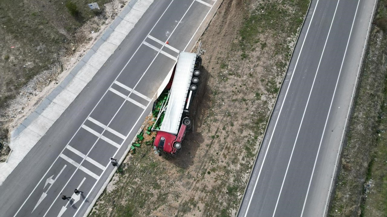 Kaza, Bolvadin ilçesi OSB Kavşağı’nda meydana geldi. Edinilen bilgilere göre, A.K., idaresindeki 42 V 4800 plakalı patates yüklü tır sürücüsünün henüz belirlenemeyen bir sebepten ötürü direksiyon hakimiyetini kaybetmesi sonucu kontrolden çıkarak refüje devrildi. Kazada sürücü ile birlikte K.K. ve M.E., yaralandı. Yaralılar kaza sonrası çevredekilerin haber vermesi üzerine olay yerine gelen ambulanslarla hastanelere kaldırıldı. Büyük çapta maddi hasarın meydana geldiği kazada, tırın dorsesinde kasalar içinde taşınan tonlarca patates ise çevreye dağıldı.
