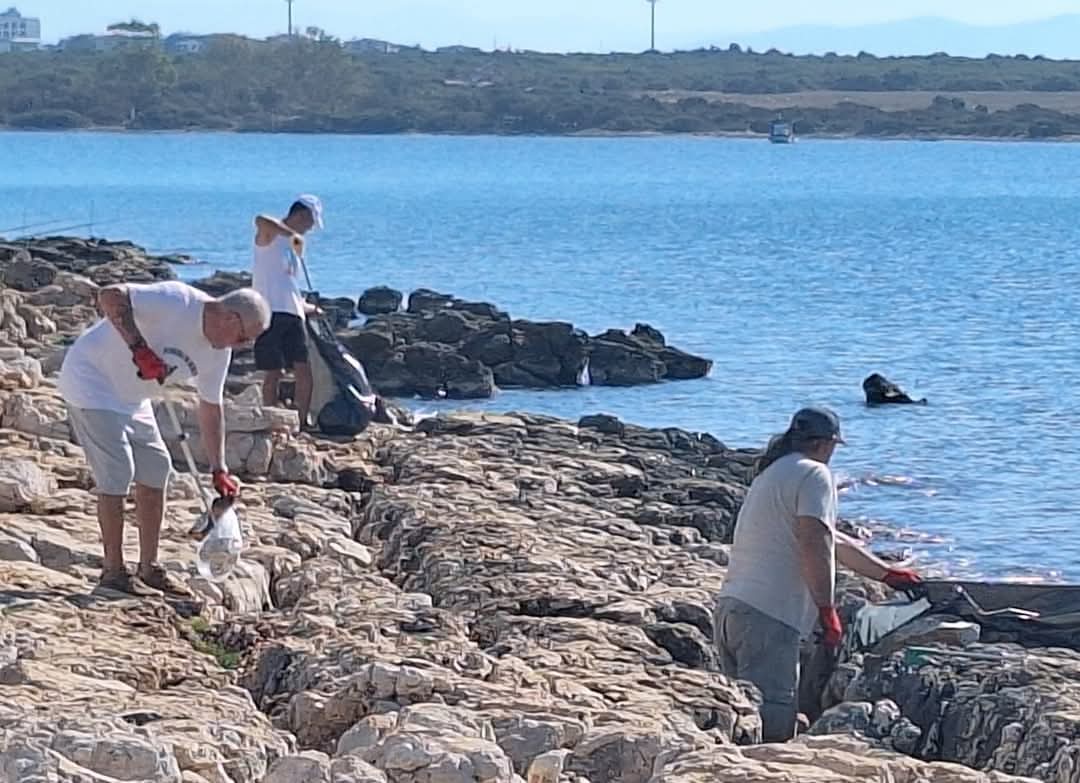 Didim’in gözde koylarında yapılan temizlik çalışmasında cam şişe, naylon poşet, mangal atıkları ile deniz kıyısındaki bir çok materyal grup üyelerince toplandı.