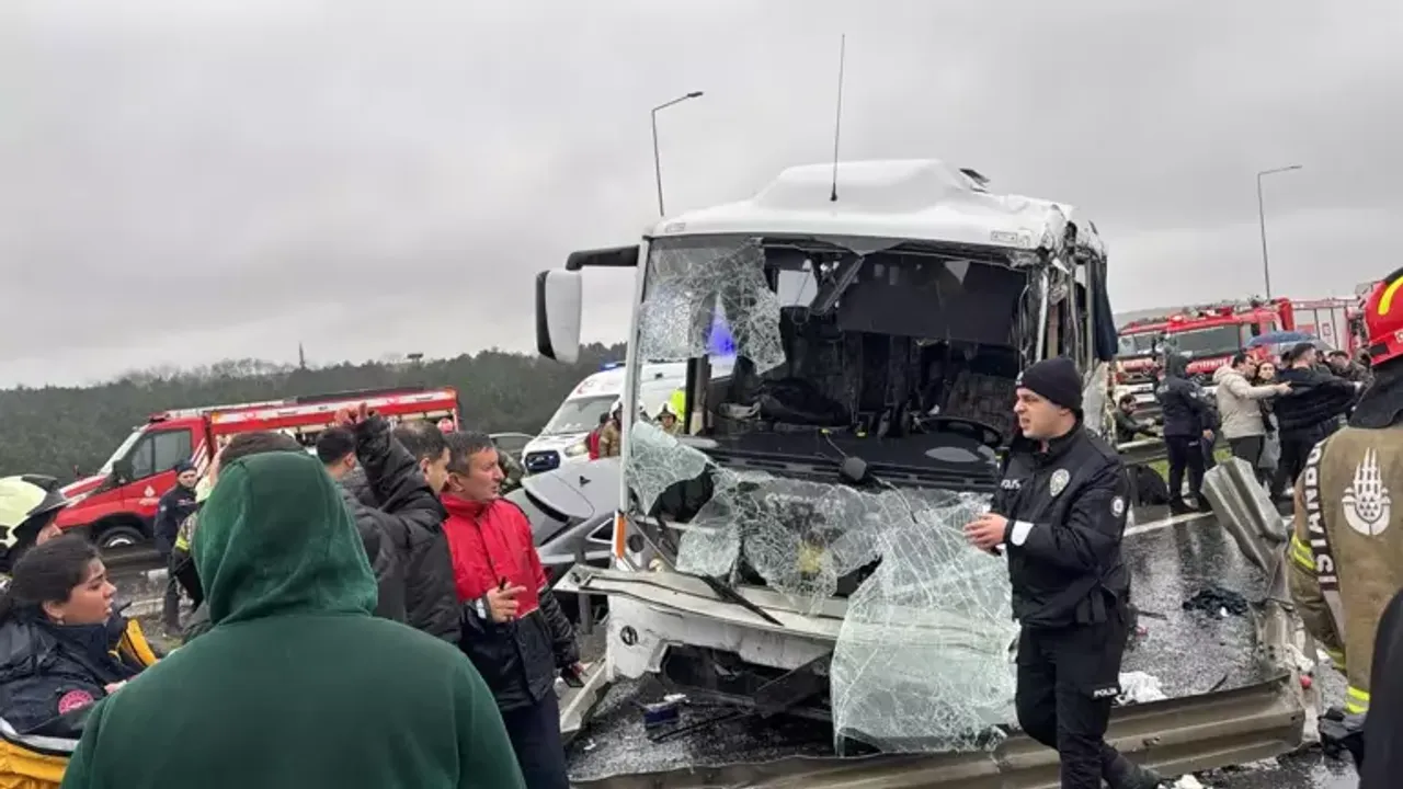 İstanbul Başakşehir'de Kuzey Marmara Otoyolu Habipler Bağlantı mevkisinde seyir halindeki bir servis aracı trafik kazasına karıştı.