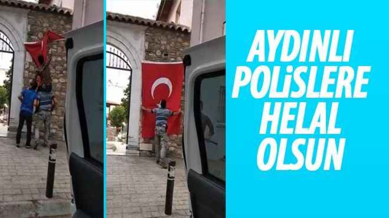 Aydın’da görev yağan polis memurlarının bayrak hassasiyetini içeren video izleyenlerin yüreklerine dokunuyor.