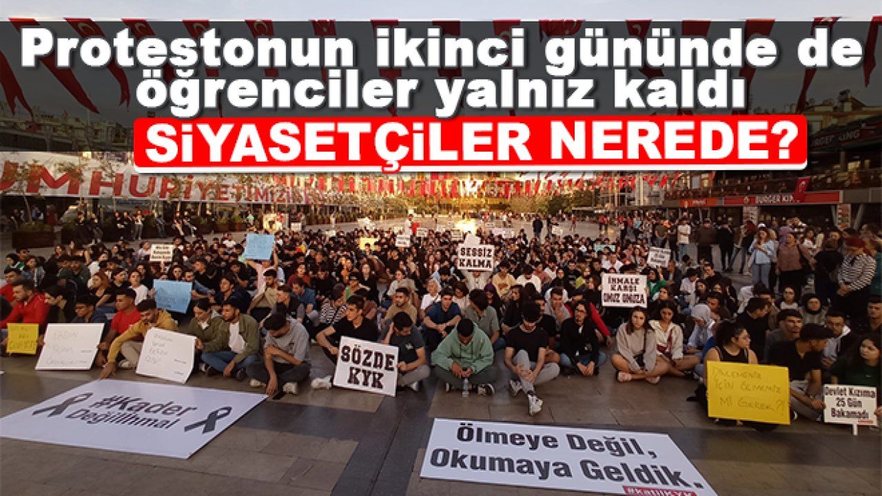 Eylemin ikinci gününde de öğrenciler Atatürk Kent Meydanı'nda buluştu. Basın açıklaması yapan grup ardından oturma eylemi gerçekleştirdi. Aydınlı siyasetçilerin öğrencilere destek amaçlı alanda bulunmaması ise gözlerden kaçmadı. Vekiller başta olmak üzere siyasi parti temsilcileri de öğrencileri protestonun ikinci gününde yalnız bıraktı.