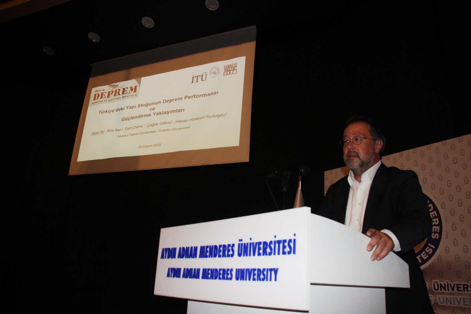 Konferansın ikinci bölümünde İstanbul Teknik Üniversitesi’nden Prof. Dr. Alper İlki, Orta Doğu Teknik Üniversitesi’nden Prof. Dr. Mehmet Polat Saka ve ADÜ Psikoloji Bölümü’nden Doç. Dr. Mehmet Şakiroğlu, deprem, yapı güvenliği ve afet psikolojisi konularında kapsamlı bilgiler sundu.