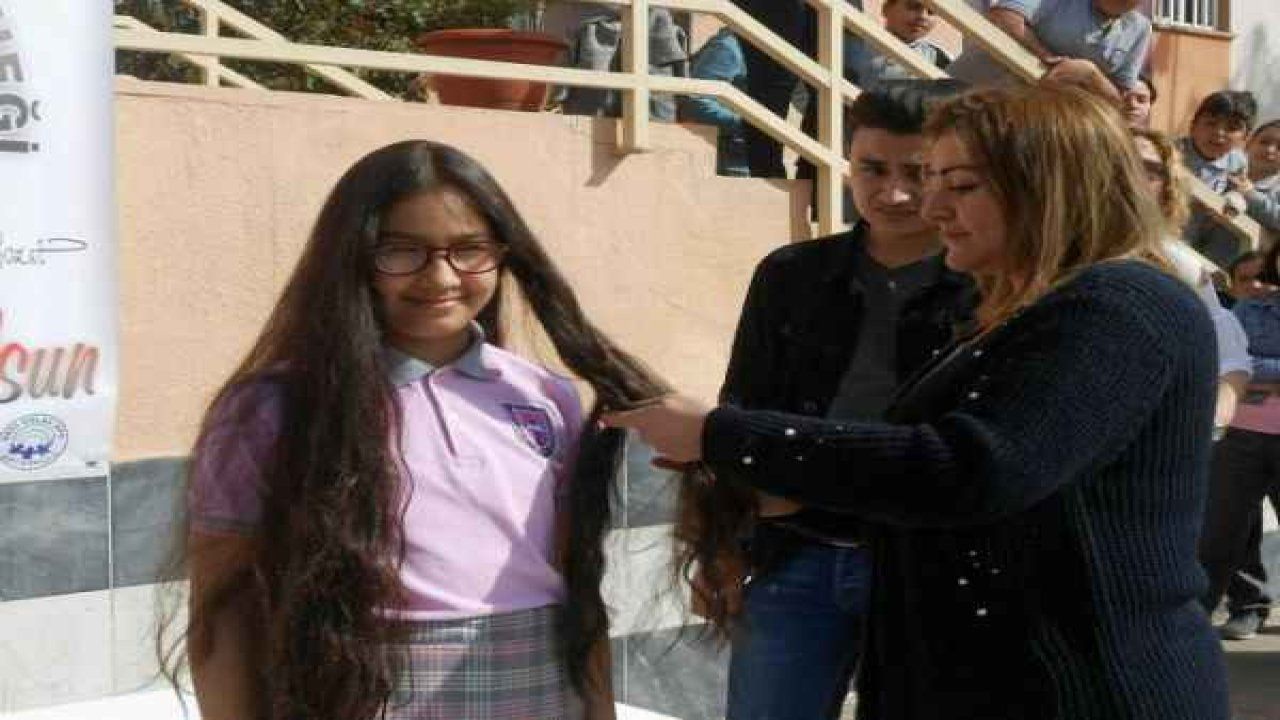 Aydın’ın Efeler ilçesindeki Hacı Celal Oto Ortaokulu 5’inci sınıf öğrencisi Umay Bozat, kanser hastalarına peruk hazırlanması için başlatılan Saçım Saçın Olsun’ kampanyasına destek vererek saçlarını bağışladı.