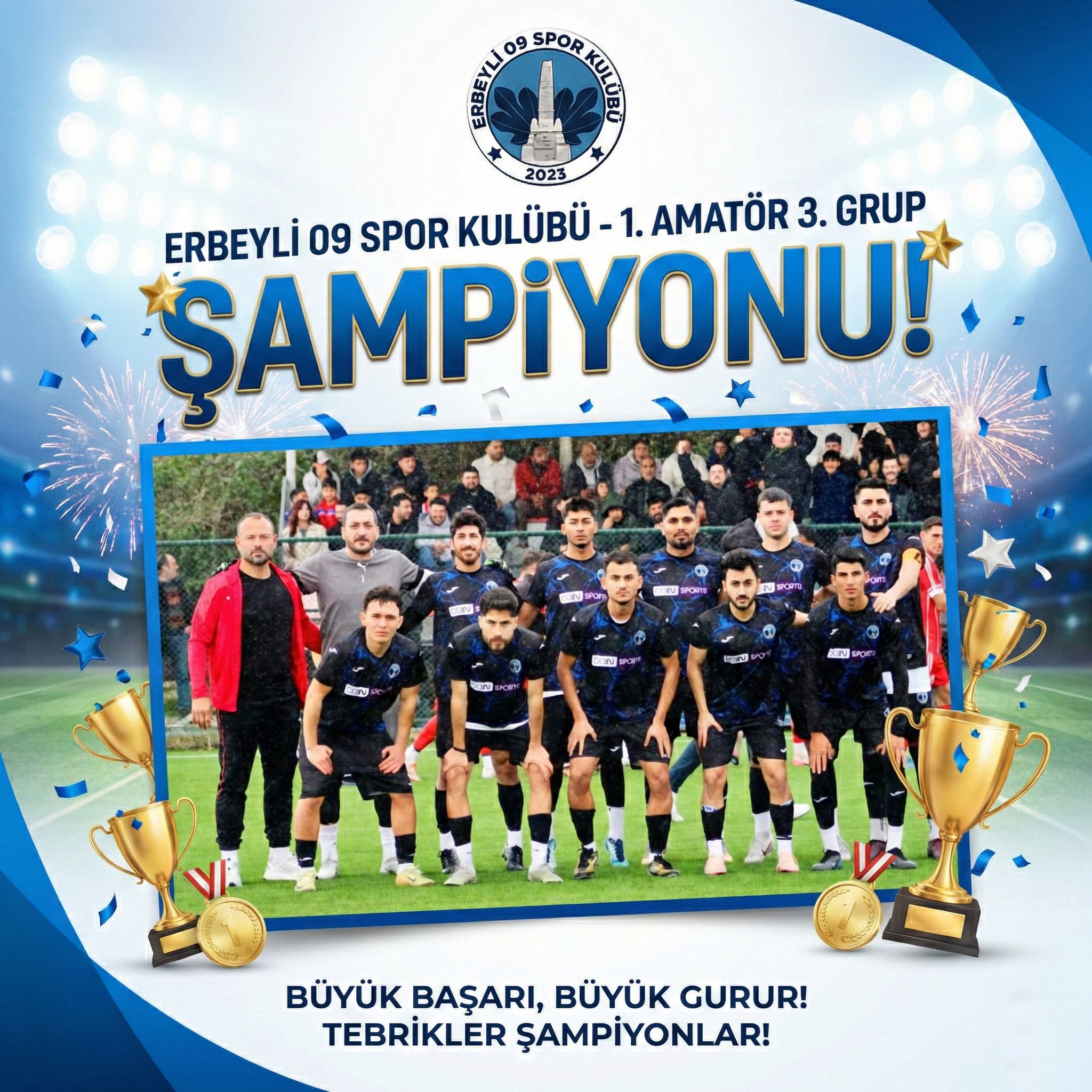Aydın 1. Amatör Küme 3.Grup’ta yer alan Erbeyli 09 Spor, şampiyonluk ipini göğüsledi. Lig’in 15’inci haftasında Kuşadası temsilcisi Güzelçamlı Belediyespor’a konuk olan Erbeyli 09 Spor, ikinci yarıda Vedaat Uygurlu’nun attığı golle karşılaşmayı 1-0 kazandı. Bu skorla İncirliova temsilcisi Erbeyli 09 Spor, sezonun bitimine 3 hafta kala şampiyonluğunu ilan etti.