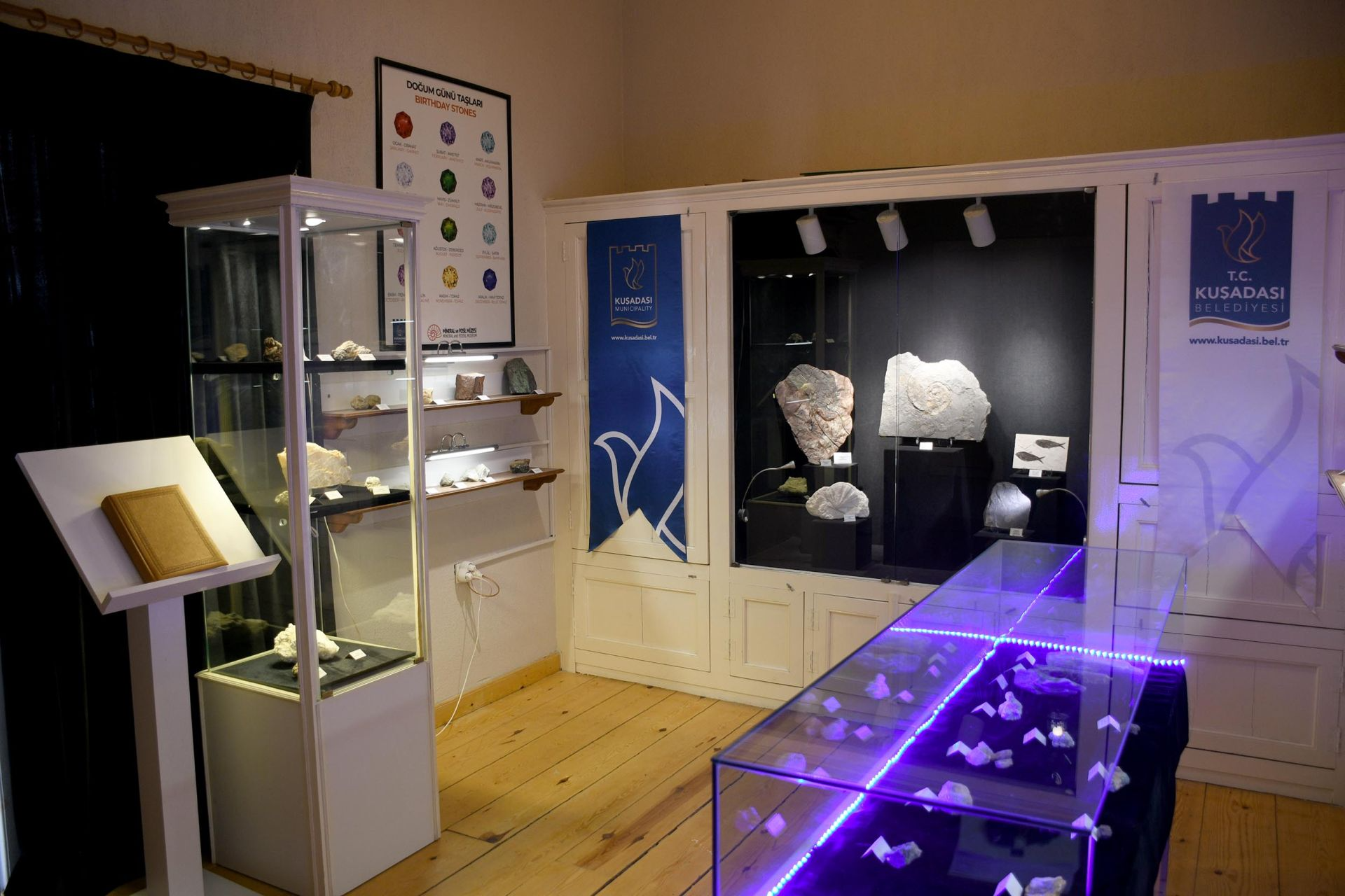 Kuşadası’nda Yıldırım Caddesi’nde bulunan iki katlı tarihi binanın Kuşadası Belediyesi ve Güney Ege Kalkınma Ajansı (GEKA) iş birliğinde restore edilmesiyle açılan Mineral ve Fosil Müzesi, bünyesinde zengin bir doğa tarihi koleksiyonu barındırıyor. Mineral ve Fosil Müzesi’nde tarih öncesi dönemden kalma mamut dişi fosili, kömürleşmiş denizlalesi fosili, taşlaşmış kalamar fosili gibi ilginç örneklerin yanı sıra yakut, elmas, altın, ametist ve kuvars gibi kıymetli ve yarı kıymetli mineraller de sergileniyor. Tarihi Kentler Birliği (TKB) tarafından düzenlenen Müze Özendirme Yarışması’nda Doğa Tarihi Müzeleri kategorisinde ödüle layık görülen Mineral ve Fosil Müzesi, ayrıca doğal taş ve minarelerden yapılmış tamamı el işi objelere de ev sahipliği yapıyor. Kente kazandırılan önemli rotalardan biri olan müze 2 milyar yaşında bir kayacı da bünyesinde sergiliyor.