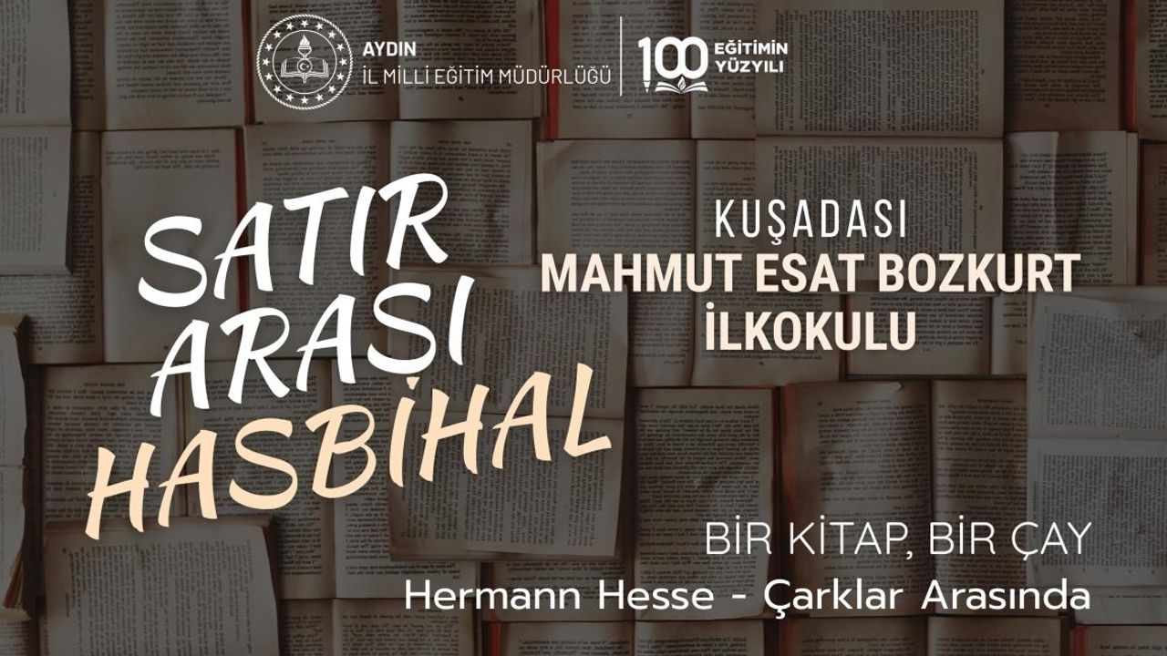 Aydın İl Millî Eğitim Müdürlüğü tarafından yürütülen, il ve ilçe bazlı sürdürülen “Satır Arası Hasbihal” projesinin yeni durağı Kuşadası Mahmut Esat Bozkurt İlkokulu oldu. Aydın İl Milli Eğitim Müdürü Mehmet Yiğit, Kuşadası İlçe Milli Eğitim Müdürü İbrahim Ataman, ilçe şube müdürleri ve Mahmut Esat Bozkurt İlkokulu öğretmenlerin katılım gösterdiği kitap merkezli söyleşi programında, Hermann Hesse’nin 'Çarklar Arasında' adlı eseri ele alındı.
