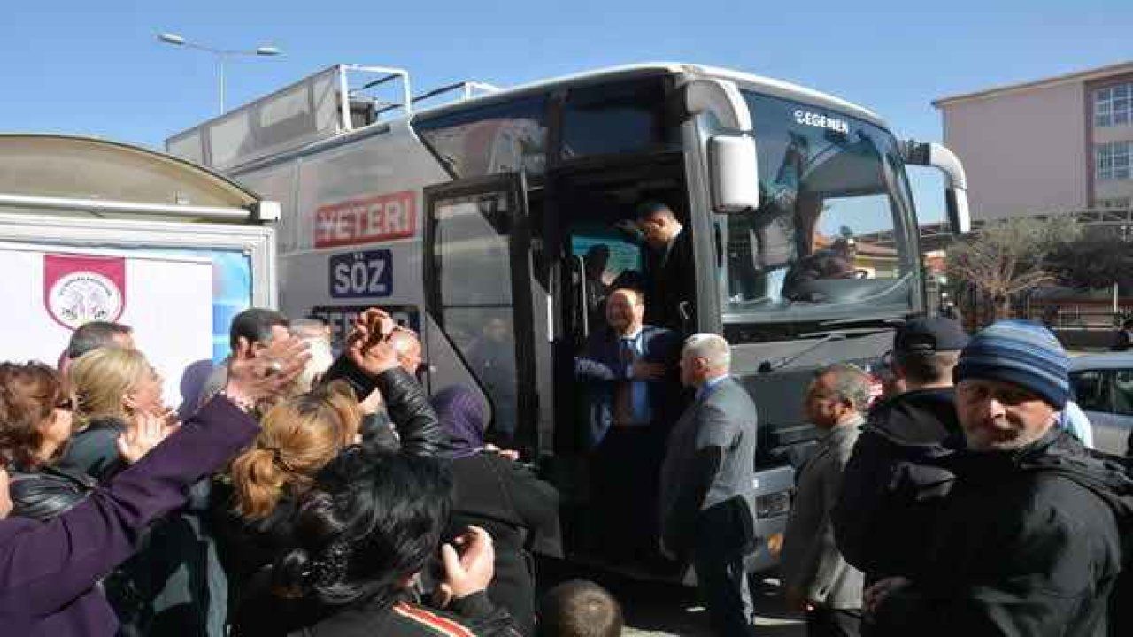 Efeler’in Mesut Abisi’ sloganı ve alkışlar eşliğinde vatandaşlara seslenen Efeler Belediye Başkanı Mesut Özakcan,