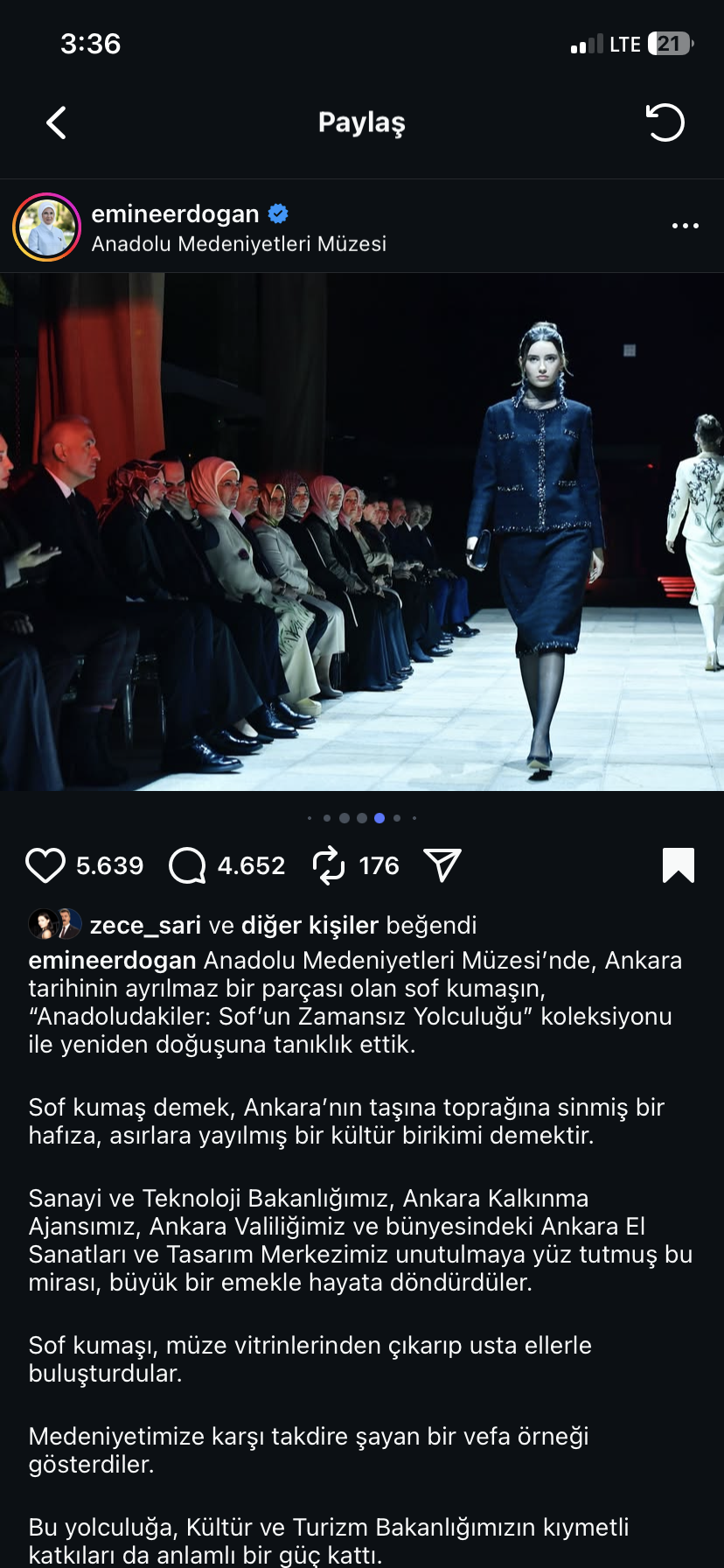 Ankara’da gerçekleştirilen ve geleneksel Ankara sof kumaşlarının tanıtımına odaklanan özel defile, Cumhurbaşkanı Recep Tayyip Erdoğan’ın eşi Emine Erdoğan’ın açılış konuşmasıyla başladı. Defilede yer alan genç tasarımcı ve model Zeynep Ece Sarı, profesyonel performansıyla sahnedeydi.