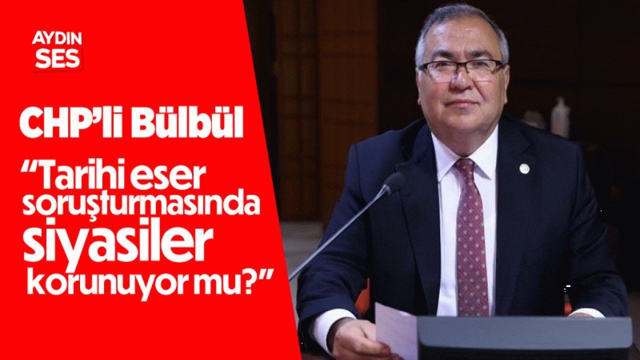 CHP’li Bülbül, Meclis Genel Kurulu’nda yaptığı konuşmasında şu ifadeleri kullandı: “Aydın'da Arkeoloji Müzesi'nde müze müdürünün, bazı kamu görevlilerinin ve siyasilerin adının karıştığı izinsiz kazılar, sondajlar, definecilik faaliyetleri, kazıları elden teslim ihalelerle paravan şirketler üzerinden alma gibi yolsuzluk ve usulsüzlük iddiaları yani suç teşkil eden birçok iddia var. Hatta iddialar arasında Nazilli Belediyesinin, arkeolojik ve yüzeysel araştırma için doğrudan temin usulüyle bu suç çetesine ihale verdiği de vardır. Bazı siyasilerin de bu işlerin içinde olduğu ve suçtan kurtulmak için transfer olma iddiaları kamuoyunda konuşulmaktadır. Sayın Bakan, Aydın'da hangi müzelerden kaç tarihî eser çalınmış ya da kaybolmuştur? Toplam maliyetleri nedir? Bu konuda Aydın Adliyesinde açılan soruşturma ve ceza davalarına bakanlık olarak müdahil olacak mısınız? Bu soruşturmalarda bazı siyasilerin korunduğu iddiaları doğru mudur?”