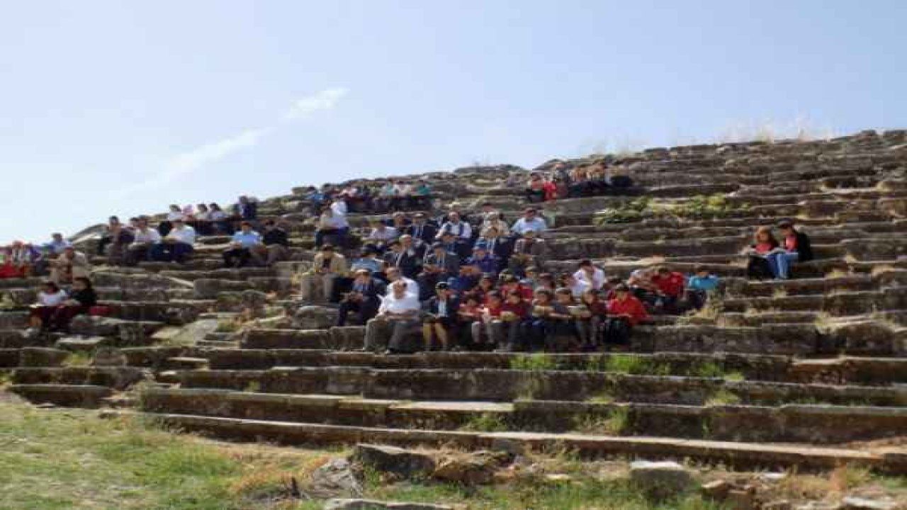 Karacasu’da başlatılan Kitap Okunur Her Yerde projesi kapsamında öğrenciler ve daire amirleri, bu kez Afrodisias’ta bulunan antik stadyumda kitap okudu.