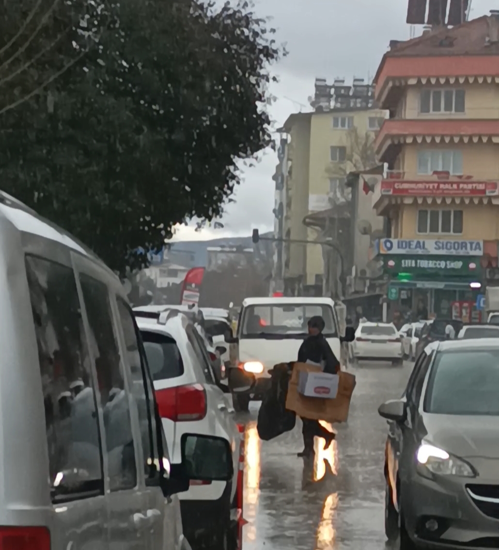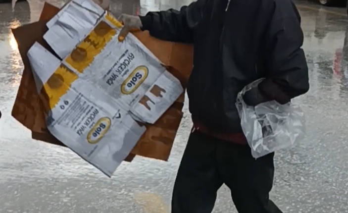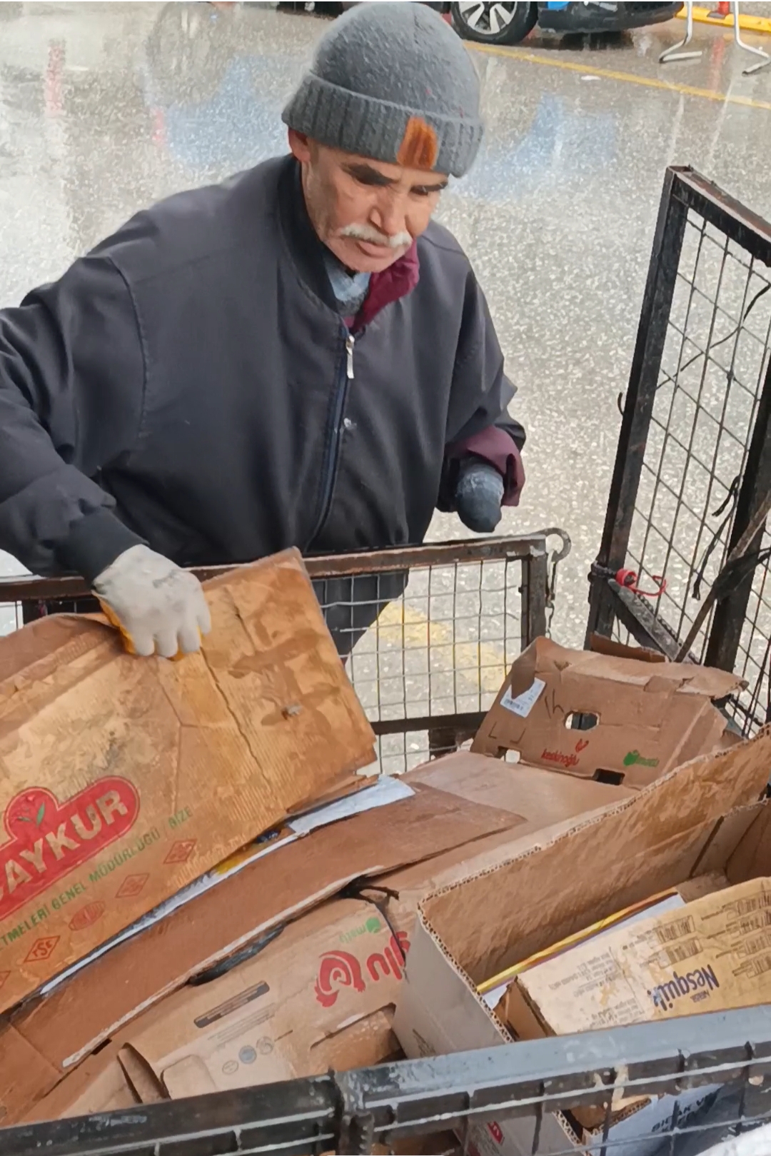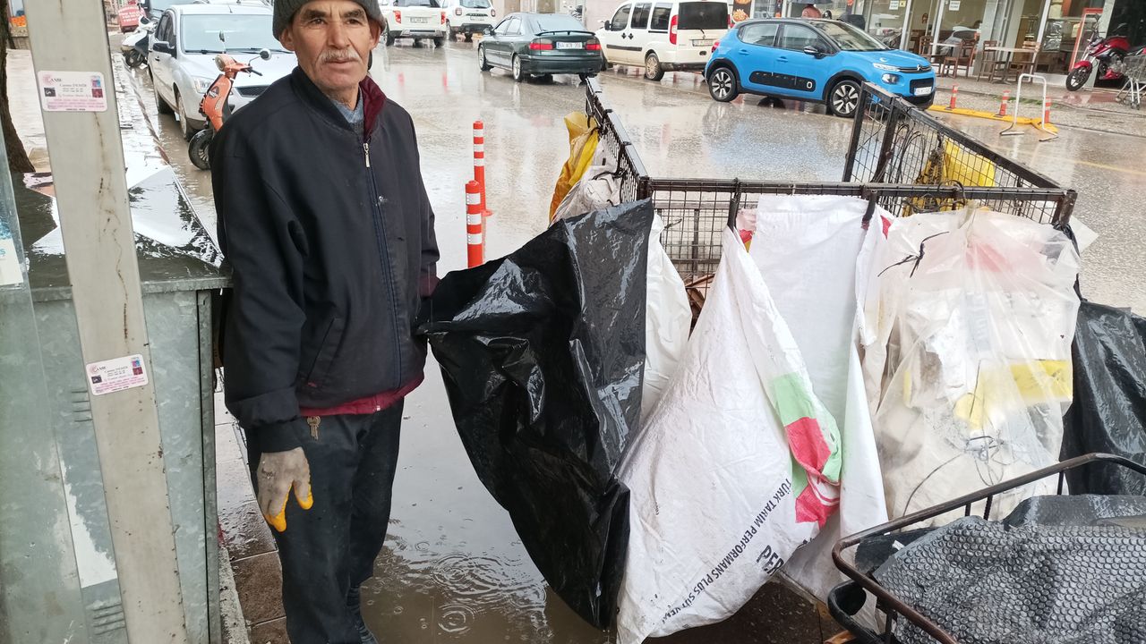 Yağmurun altında ekmek parası kazanmaya çalışan Özen, "5 nüfusum var. Onlara bakmak zorundayım. 19 bin lira emekli maaşımla ne yapılır. Bin, bin 500 lira bir zam vermiş. Engelim 2005 yılında beri var. Fabrikada çalışırken fabrikanın hatası yüzünden elimi kaybettim. Ekmek paramızı çıkarmaya çalışıyorum. 19-20 bin lira parayla nasıl geçineceksin. Kağıt topluyorum. Bugün yağmurda ıslandı adam almıyor mesela ama kurutup satmaya çalışacağım. Bunu satıp ekmek paramızı çıkarmaya çalışıyorum. Şu halime bak. Ama ne yapacaksın" dedi.