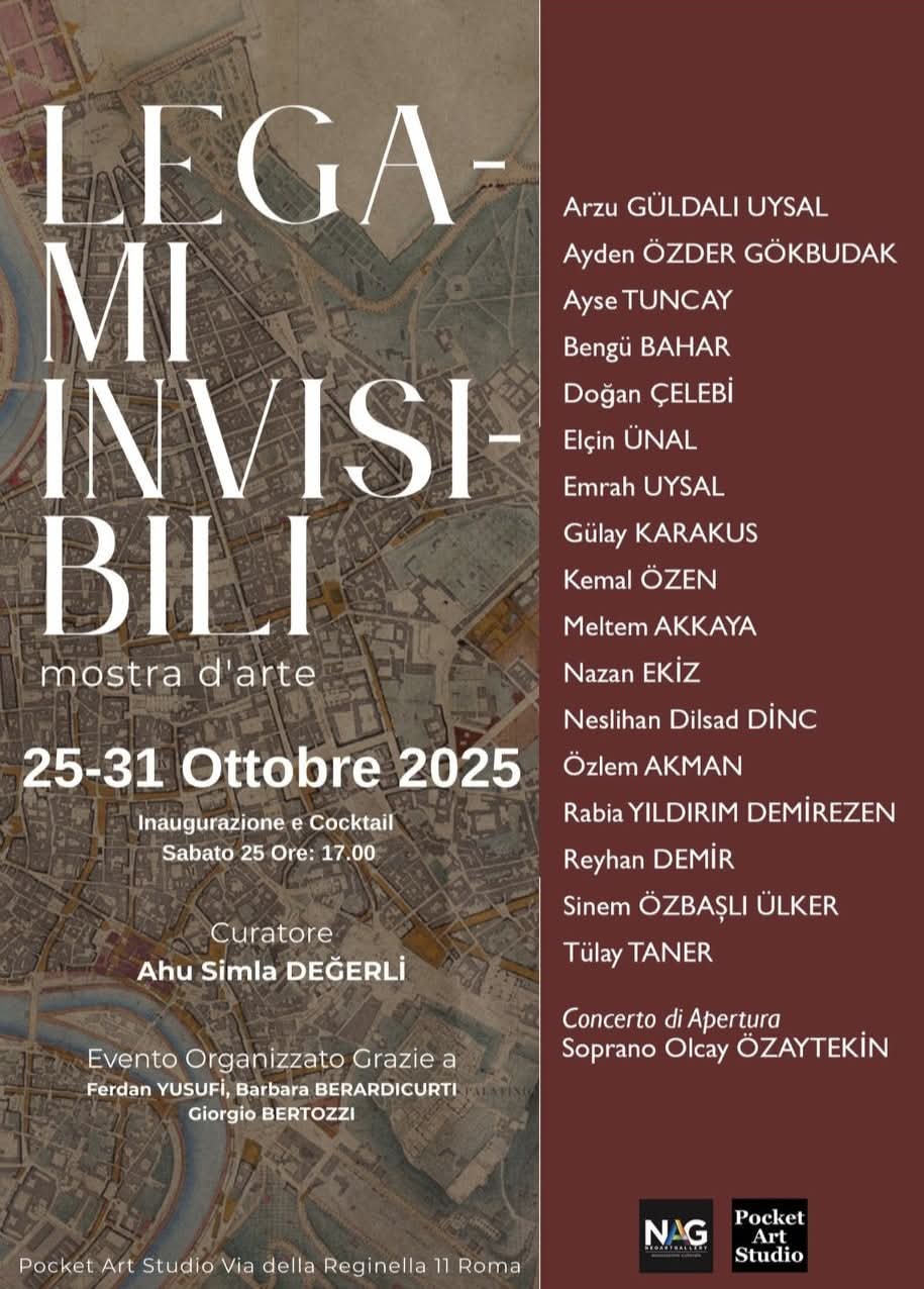 Roma'nın en özgün sanat galerilerin biri olan Pocket Art Studio, 17 Türk sanatçı ve Adnan Menderes Üniversitesi (ADÜ) Eğitim Fakültesi Güzel Sanatlar Eğitimi Bölümü Müzik Eğitimi Anabilim Dalı Öğretim Görevlisi, Soprano Olcay Özaytekin'in katılacağı “Görünmez Bağlar: “Legami Invisibili” adını taşıyan sergi etkinliğine ev sahipliği yapmaya hazırlanıyor.