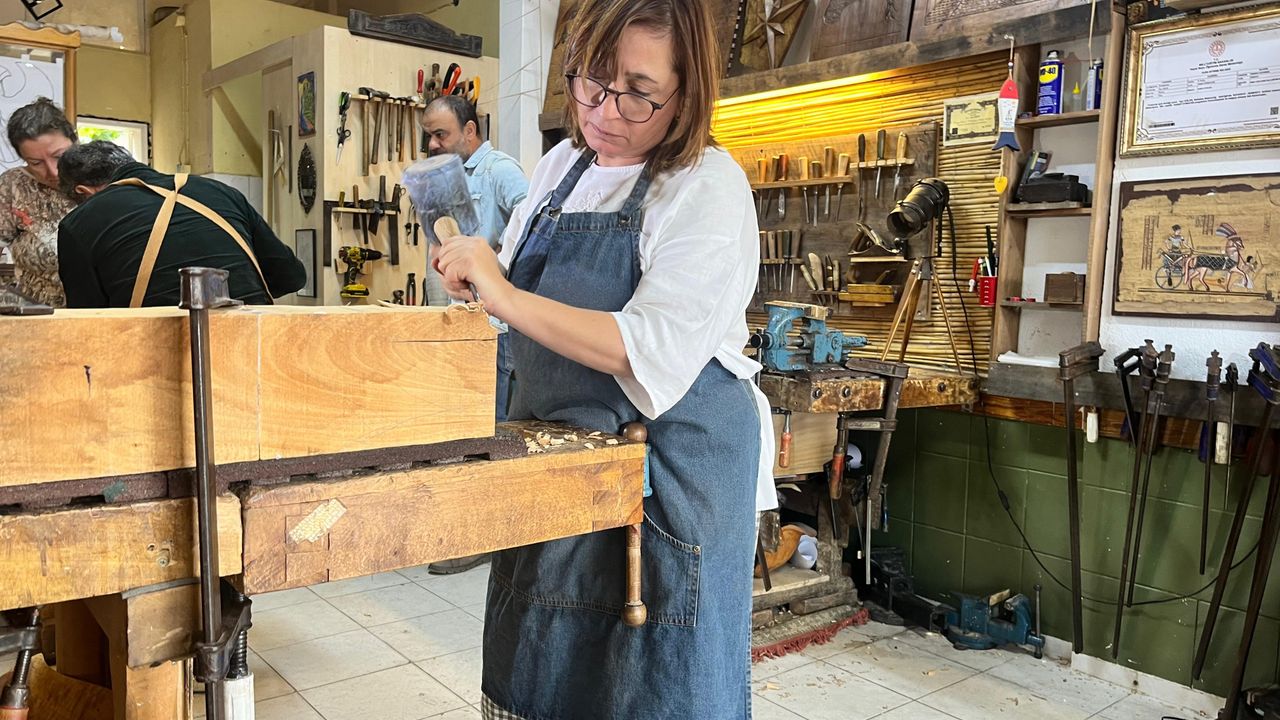 Yaklaşık 2 yıldır ahşap oymacılığı ile uğraştığını ifade eden emekli Seda Güldoğan (51), haftada 2 gün ahşap oymacılığı atölyesine geldiğimi söyledi. Üretme fikrinden yola çıkarak ahşap oymacılığına başlayan Güldoğan, "Özellikle ileri yaşlarda, çocuklar evden gittikten ve bir anne olarak artık onlarla ilgilenmeye ihtiyaç kalmadığında, bir hobi arayışındaydım. Ahşap fikri bana çok sıcak geldi. Hocamın Foça'daki sergisini görmüştüm ve çok hoşuma gitmişti. Yapabilir miyim, yapamaz mıyım emin olamamıştım ama hocam yapılabileceğini gösterdi. Ben de hoşuma gittiği için devam ettim. Ahşap oymacılığının, insanı anda tutan bir hobi olduğunu düşünüyorum. Çünkü o an başka hiçbir şeyle uğraşacak ya da düşünecek vaktiniz olmuyor. Sadece ahşabın içinden çıkarmak istediğiniz şeye odaklanıyorsunuz. Bu yüzden ahşap oymanın terapisttik bir tarafı olduğunu düşünüyorum. Biraz dış dünyadan soyutlandığınız, geçmişi ya da geleceği değil sadece tokmağın vurduğu alanı gördüğünüz ve yaşadığınız bir hobi gibi geliyor" sözlerini kullandı.