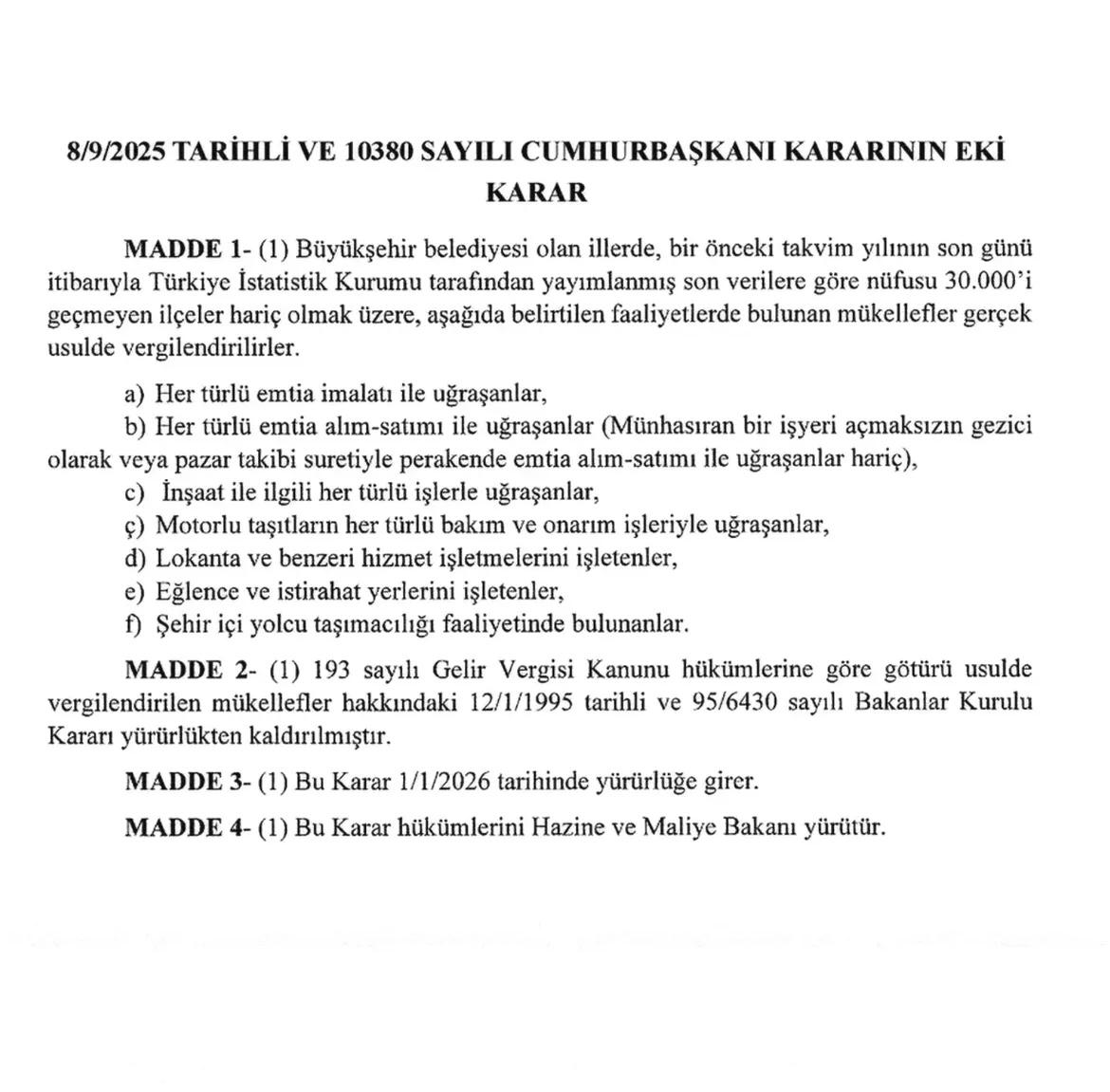 193 Sayılı Gelir Vergisi Kanunu Hükümlerine Göre Ticari Kazancı Basit Usulde Tespit Edilen Mükellefler Hakkında Cumhurbaşkanı Kararı, Resmi Gazete'de yayımlandı.