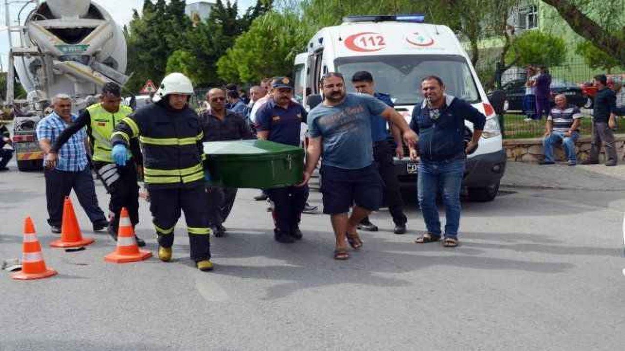 Didim’de elektrikli motosikletin beton mikserinin altında kalması sonucu meydana gelen kazada bir kişi ölürken, bir kişi ağır yaralandı.