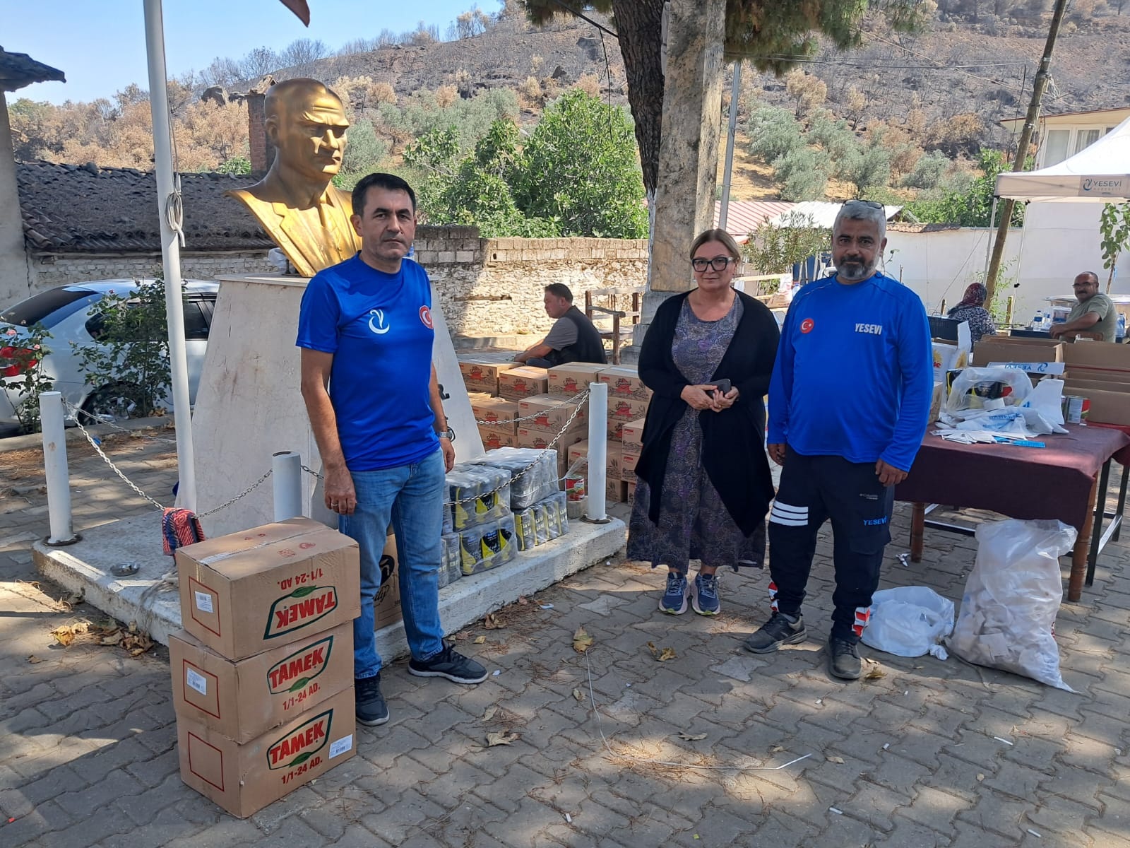 Yardım faaliyeti kapsamında Karadoğan Mahallesi’nde bin 500 kişilik pilav, tavuk ve ayran hazırlanarak bölge halkına ikram edildi. Aynı alanda paketlenen 13 temel gıda maddesinden oluşan 204 adet gıda kolisi, Karadoğan Mahalle Muhtarı Levent Köymen eşliğinde yangından etkilenen ailelere ulaştırıldı. Dernek gönüllüleri ayrıca Suçıktı ve Yeniköy mahallelerine de giderek hem sıcak yemek ikramında bulundu hem de gıda kolilerini ihtiyaç sahiplerine teslim etti. Etkinliğe Yesevi Hareketi Derneği Genel Başkan Yardımcısı Ahmet Atay, Batı Anadolu Bölge Başkanı Uğur Yiğit, Aydın İl Başkanı Hidayet Karabay ve çok sayıda gönüllü katıldı. Etkinlik süresince İzmir Büyükşehir Belediyesi Genel Sekreter Yardımcısı Prof. Dr. Pınar Okyay da çalışmaları yerinde takip etti. Vatandaşlarla sohbet eden Okyay, “Sivil toplum kuruluşlarının böyle zamanlarda sahada olması, insanlara yalnız olmadıklarını hissettirmesi çok değerli. Yesevi Hareketi Derneği’ni bu anlamlı çalışmaları için tebrik ediyorum,” ifadelerini kullandı.