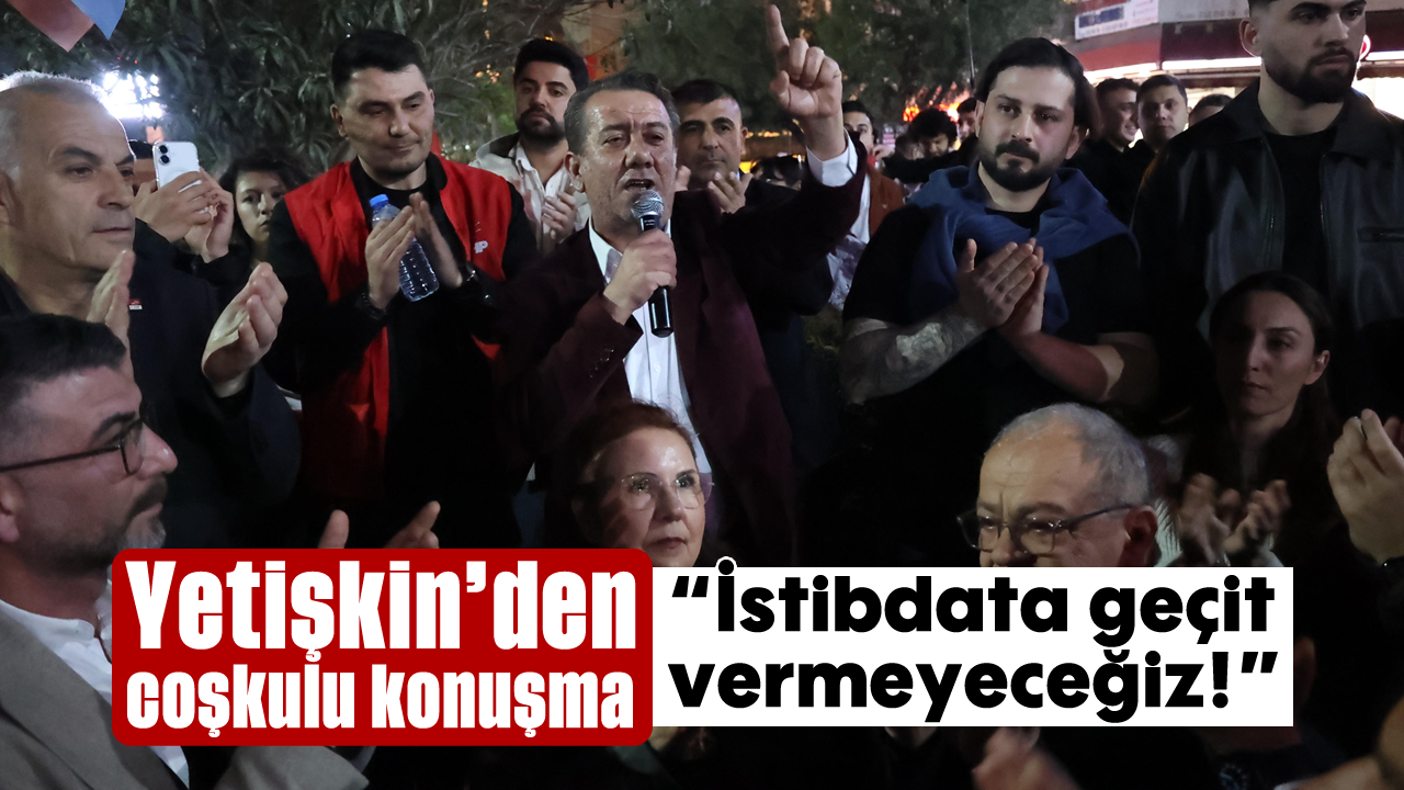 CHP Aydın İl Başkanlığı öncülüğünde gerçekleştirilen yürüyüş öncesinde kalabalığa seslenen Başkan Yetişkin, “1881’de Selanik’te doğan mavi gözlü Gazi Mustafa Kemal Atatürk’ün ışığında olan arkadaşlar, direnmeye devam edeceğiz. Ve o surları yıkacağız. Demokrasi aşığı dostlar, mutlaka ama mutlaka istibdata geçit vermeyeceğiz. Sonuna kadar özgürlüğümüz için mücadele edeceğiz” dedi.