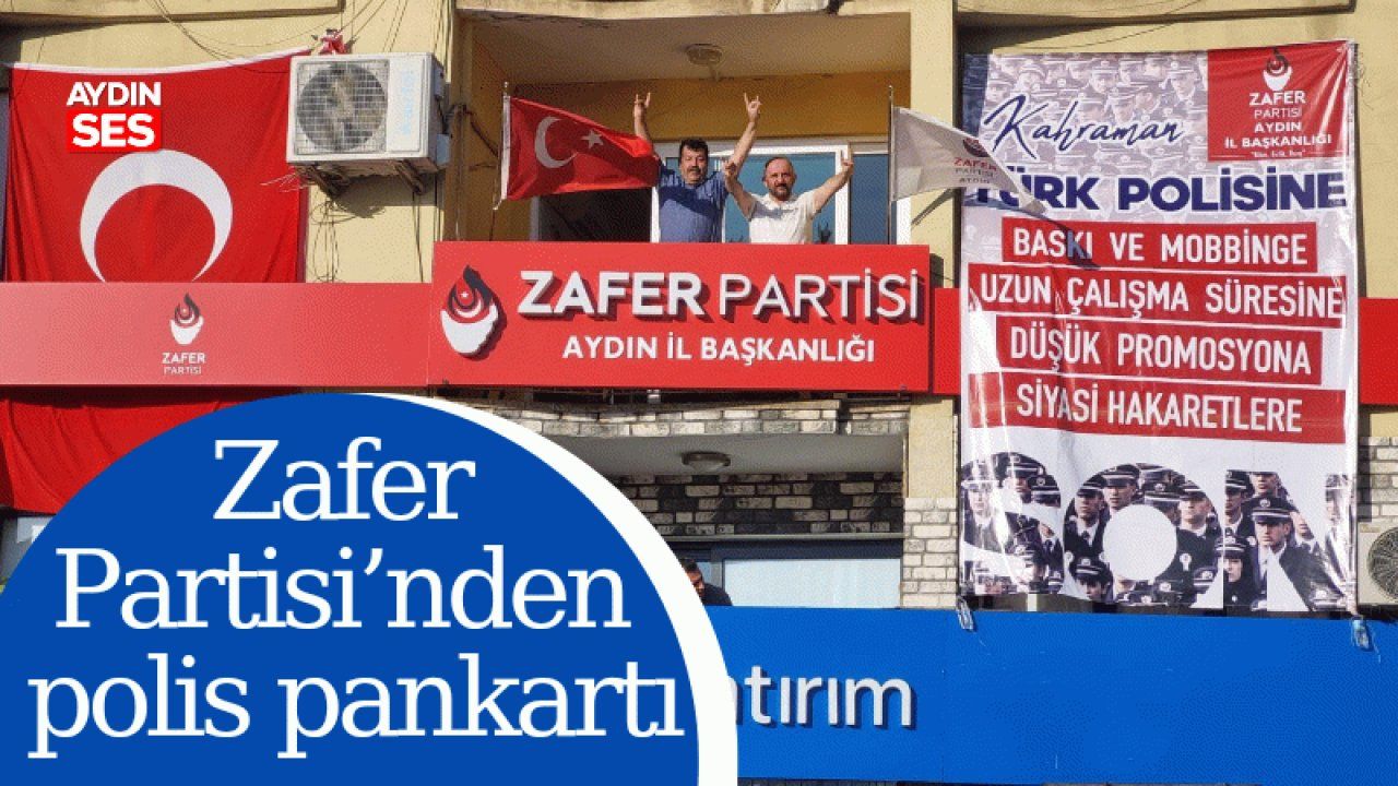Zafer Partisi Aydın İl Başkanlığı, Efeler ilçesindeki parti binasına üzerinde, "Kahraman Türk polisine baskı ve mobbinge, uzun çalışma süresine, düşük promosyona, siyasi hakaretlere son” yazılı bir pankart astı. Birlikte pankartı asan Aydın İl Başkanı Ercan Arslan ve Efeler İlçe Başkanı İsmail Kebelioğlu, bozkurt işareti yaptı. Konuyla ilgili açıklamalarda bulunan İl Başkanı Arslan, her zaman Türk polisinin yanında olduklarını söyledi. Başkan Arslan, “Zafer Partisi olarak biz, Türk Polis Teşkilatı’nın siyasetçilerin oyuncağı olmasını değil, Türk milletinin huzur ve güvenliği için çalışmasını istiyoruz. Polisin çalışma şartlarının yasal çalışma sürelerine çekilmesini, üzerindeki siyasi baskı ve mobbingin kaldırılmasını, promosyon konusundaki mağduriyetlerinin giderilmesini talep ediyoruz. Bu anlamda polisimize desteğimizi göstermek için parti binamıza bu pankartı astık. ‘Yerli ve milli Escobar’ afişimizi verilen hukuksuz talimatlarla indirmeye çalışan polisimizi, biz birazda yormuştuk. Bu pankartımızla onların yanında olduğumuzu gösterdik. Görev başındaki kahraman Türk polisimize selam olsun” ifadelerini kullandı.