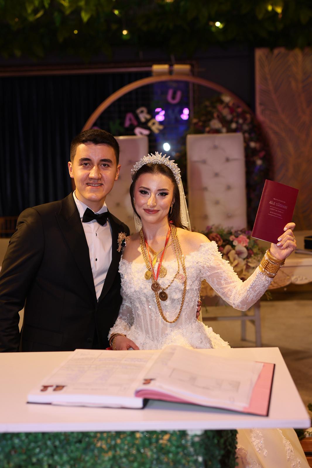 Gecede genç çiftin nikahlarını Köşk Belediye Başkanı Nuri Güler kıyarken, çiftin evlilik cüzdanını Ege Zeytin ve Zeytinyağı İhracatçıları Birliği Başkan Yardımcısı Davut Er verdi.