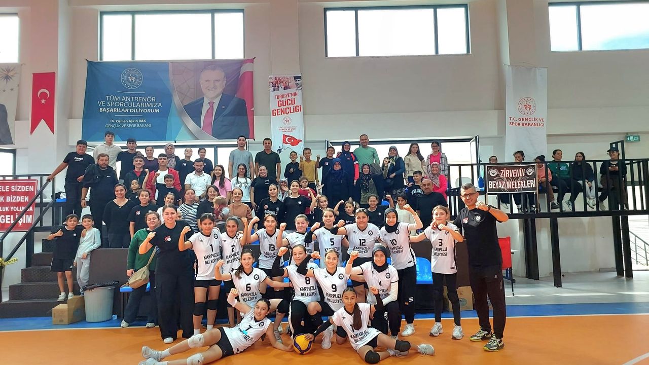 Aydın’ın Karpuzlu ilçesinde beden eğitimi öğretmeni olarak görevlerini sürdüren Ramazan ve Mürüvvet Palamutlu’nun çiftinin antrenörlüğünü yaptığı Zirve Gelişim Spor Kulübü, başarıdan başarı koşuyor. Kentin en küçük ilçesi olan Karpuzlu’nun tek voleybol takımı olan Zirve Gelişim Spor Kulübü, ilk olarak Midi Kızlar kategorisinde Efeler’in ekipleri Cüneyt Doğruer SK, Altın Smaç Spor Kulübü ve MSC SK ile aynı grupta yer aldı. Zirve Gelişim Spor Kulübü, grubunu ikinci sırada tamamlayarak final etabına kalmayı garantiledi.